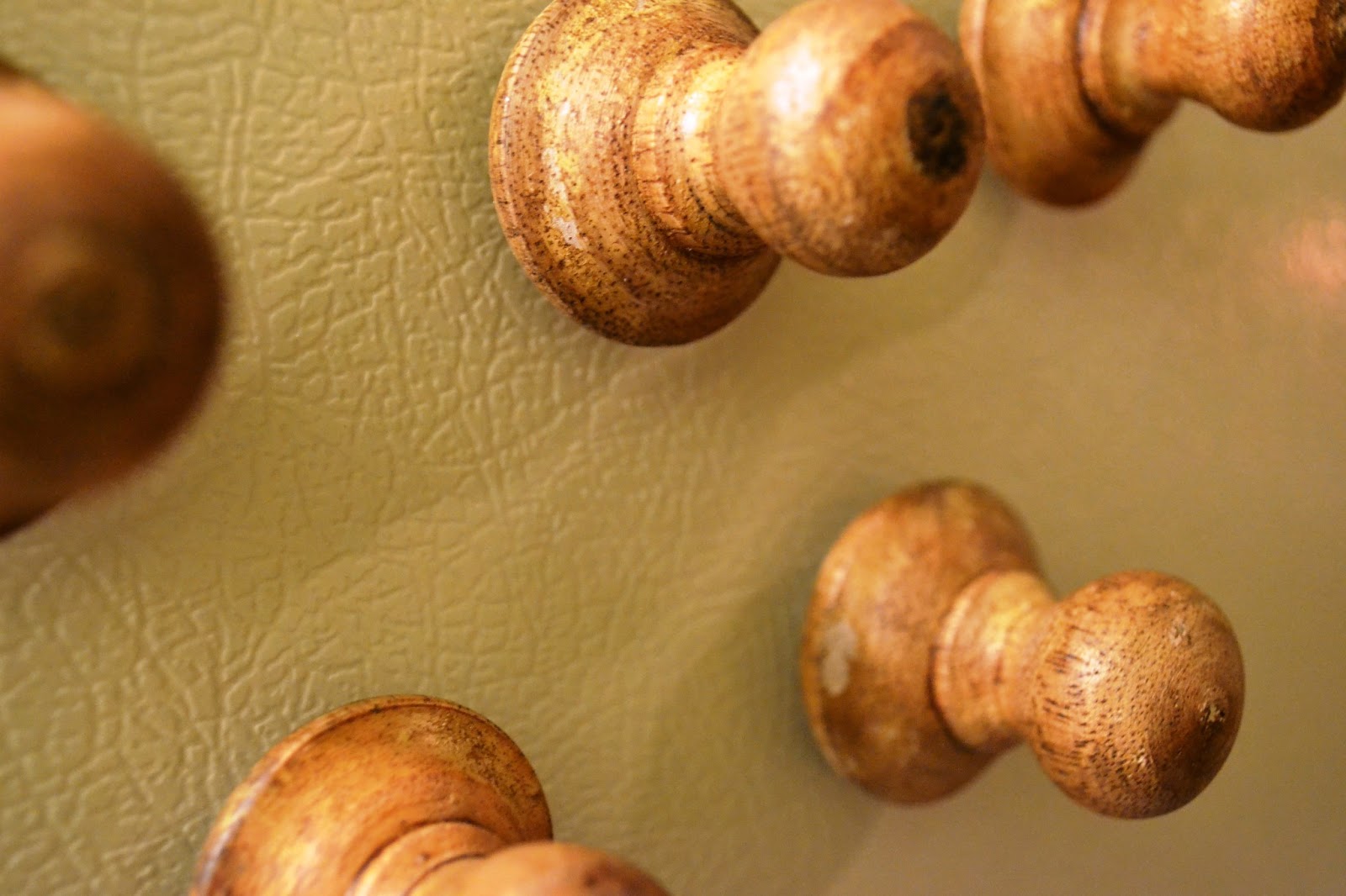 I may eventually spray paint these knobs a different color but for right now I kind of like the raw wooden look. The old refrigerator on the other hand, well we just won't go there.