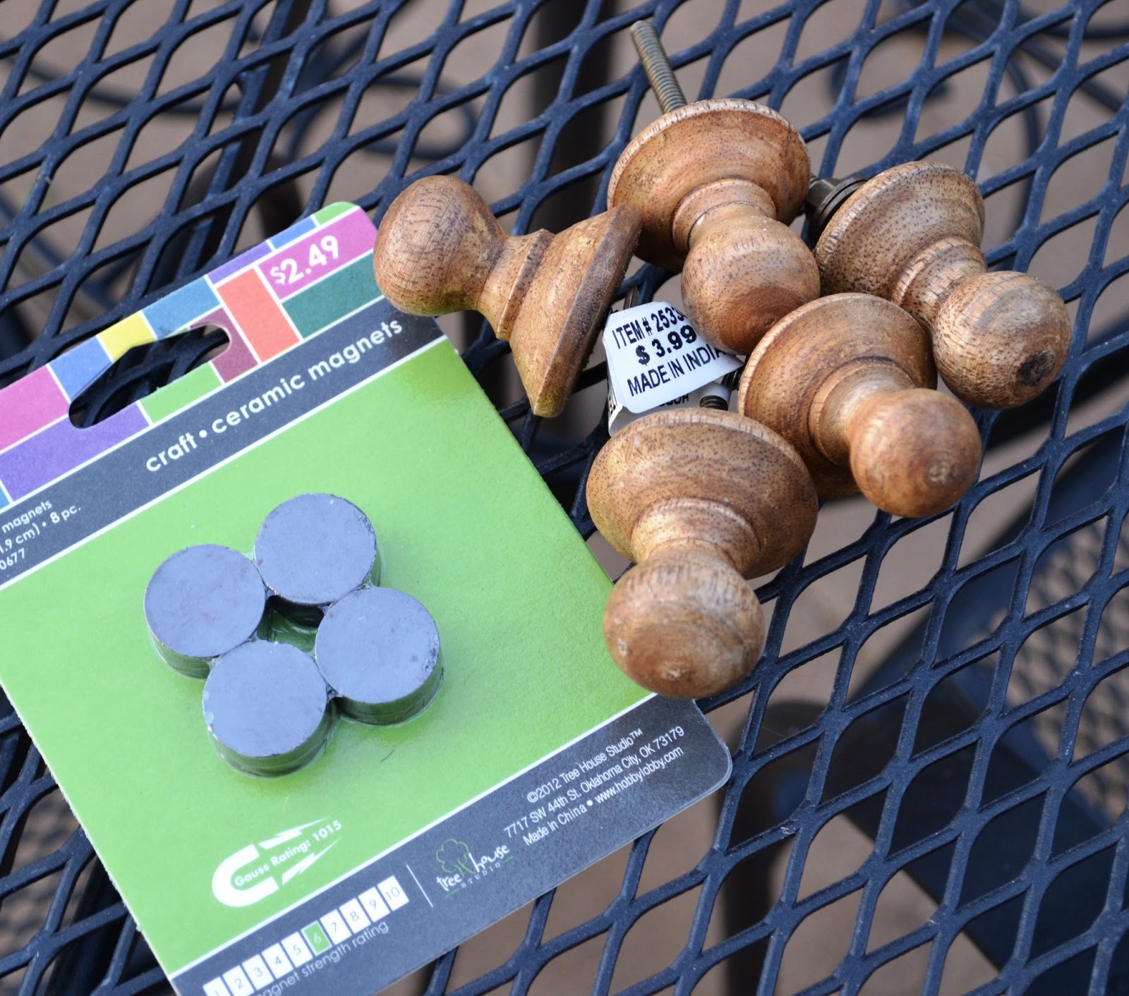 All you need is some knobs, glue gun & glue sticks, and magnets. I picked up these knobs and magnets at Hobby Lobby (of course, right?). The knobs are always 50% off so these weren't but $2 a piece and they have some super cute knobs that would make for some great fridge magnets. The only thing you want to keep in mind while picking out a knob is the surface in which you plan to attach your magnet. You will want enough space to attach your magnet without it hanging over.
