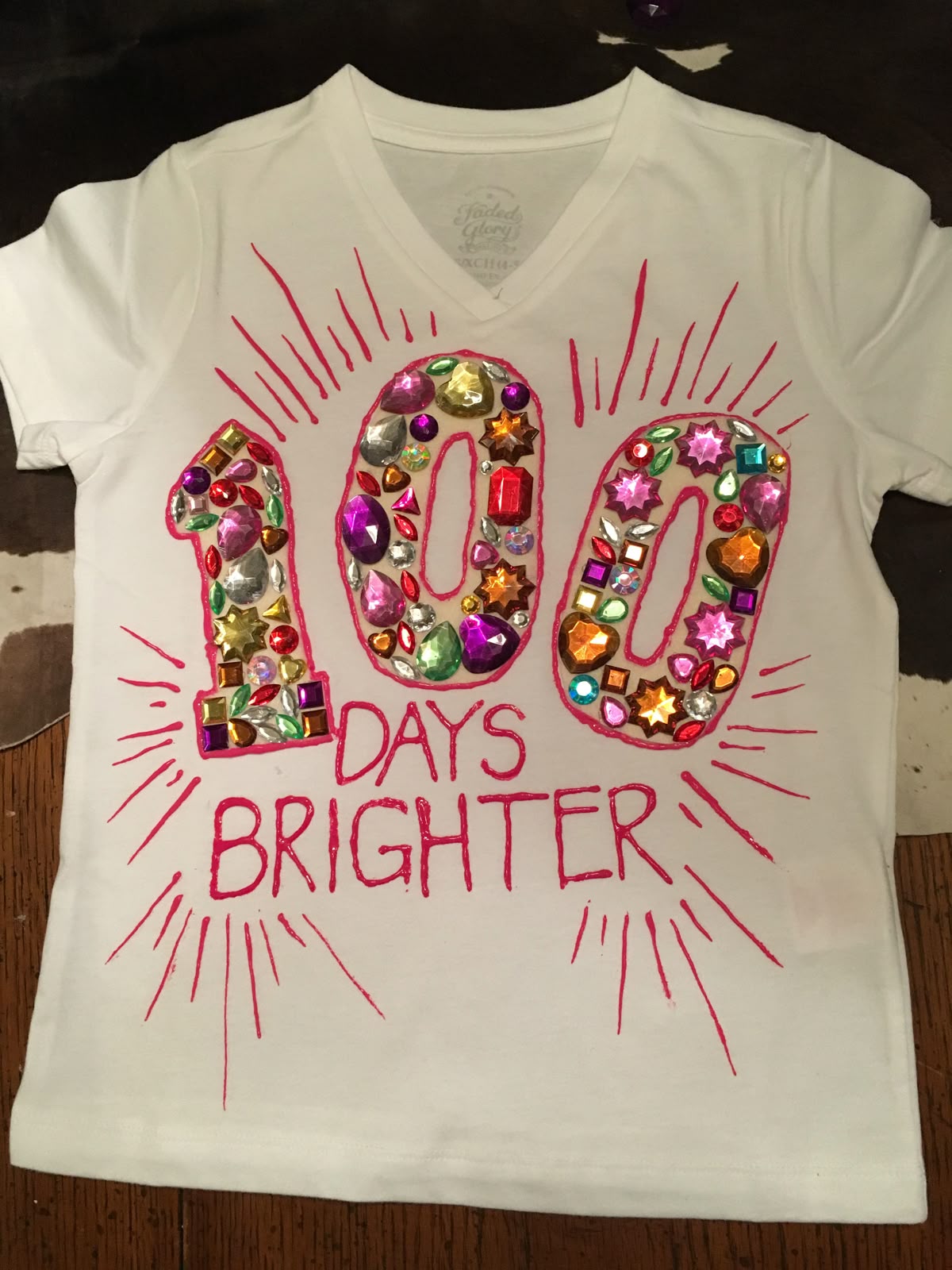 You can use fabric glue, Elmer's, and/or hot glue depending on what you are gluing onto the shirts. You will likely lose stickers and any other items you put on the shirt as kids tend to play rough at recess but they would certainly work for getting to school and showing off their 100 item shirt.