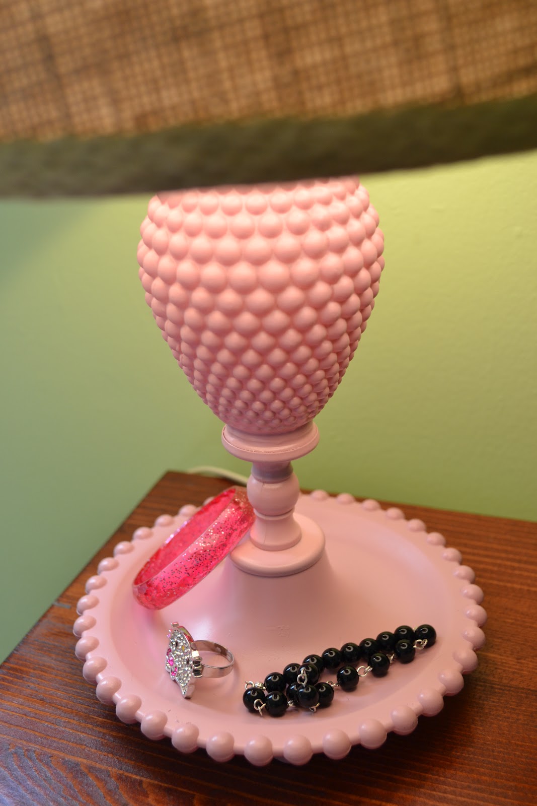 I love old milk glass lamps and have revamped a few myself. They are classic and remind me of Grandma's house, but in a good way. Love the pink.
